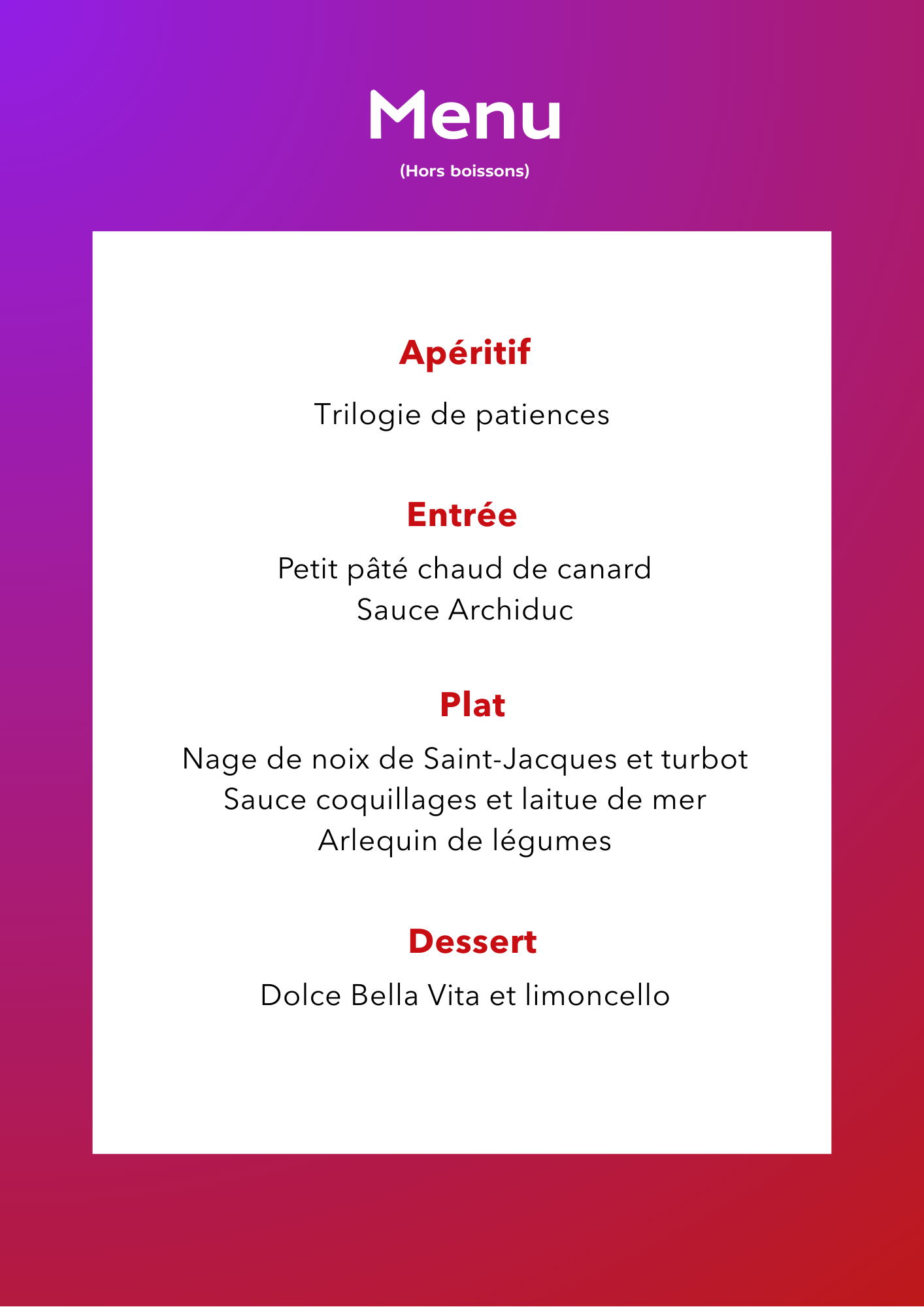 Dîner + concert - Prix par personne - Hors boissons